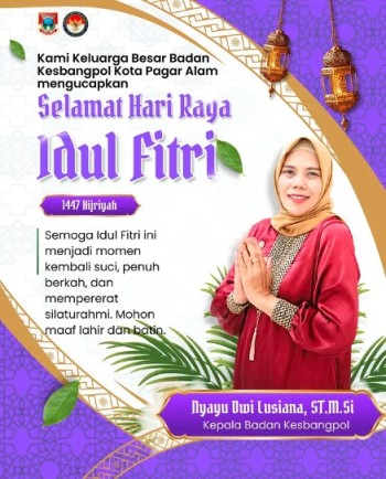 Ayo sama-sama kita bangun Kota Pagar Alam yang tertib, disiplin, dan dapat menjadi tempat bernaung yang aman serta nyaman. Maju terus Pagar Alam!